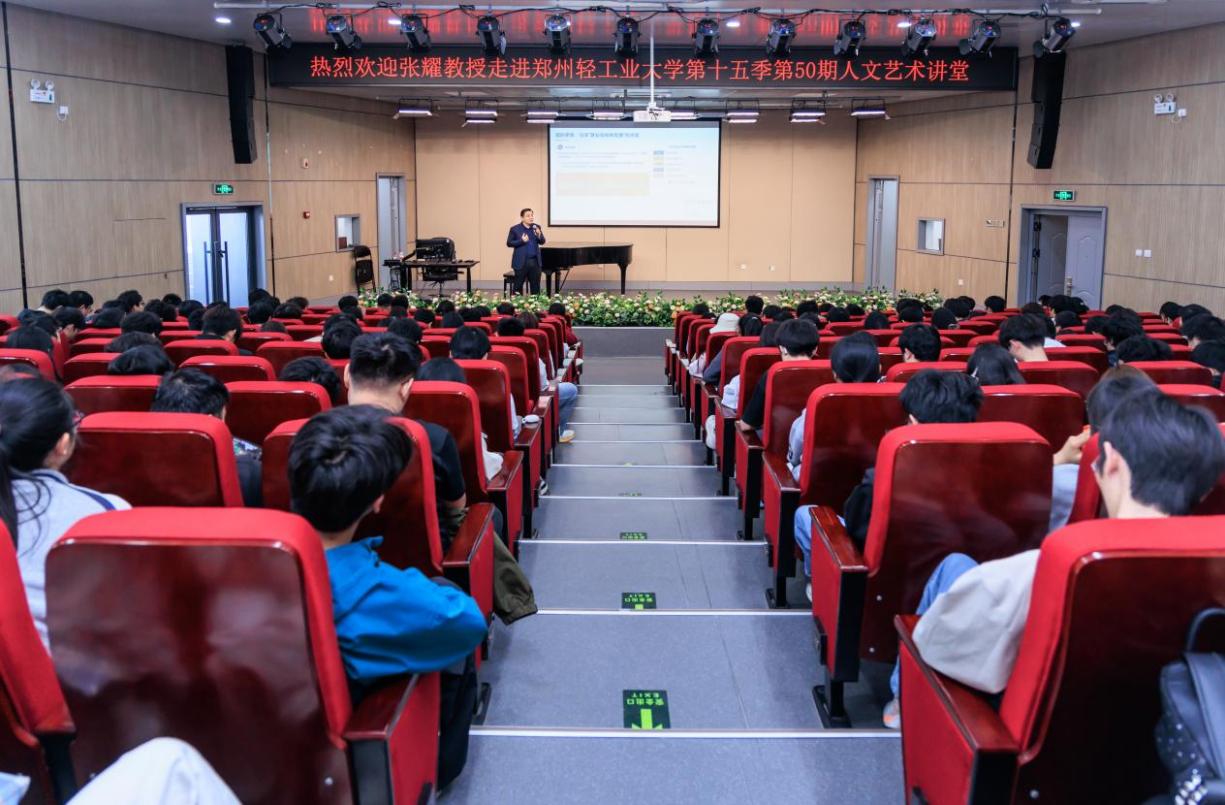 为提高美育教学质量、拓展美育育人实效,4月9日,天津市民间组织国际交流促进会秘书长、天津市河东区书协副主席、天津科技大学艺术学院硕士研究生导师、天津市青联委员、青年书画家张耀到郑州轻工业大学艺术教育中心开展美育教学交流,并为学生作艺术社交力专题讲座。