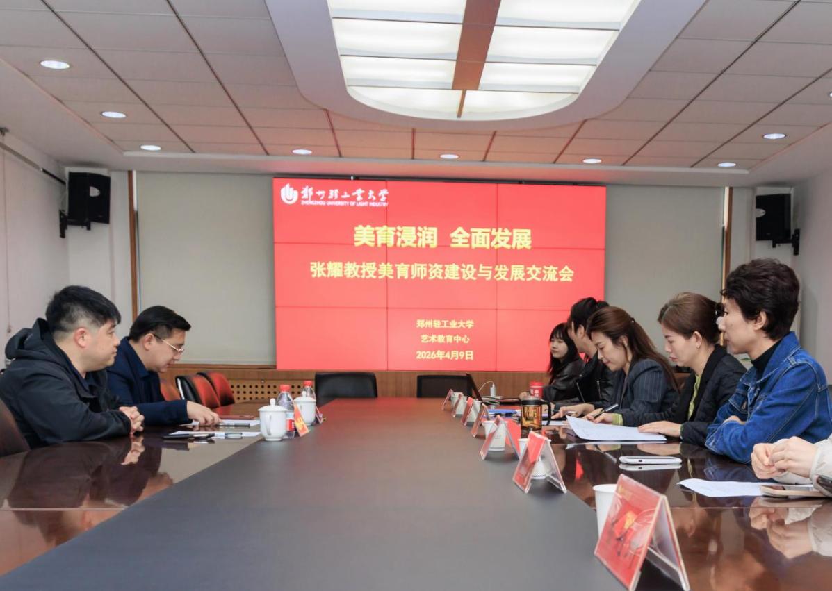 上午9时,“美育浸润全面发展——美育教学与实践交流会”在东风校区行政楼会议室举行。艺术教育中心直属党支部书记金凯、主任张艺帆及全体教师参会,会议由副主任王靖主持。张艺帆作主题报告,介绍学校美育课程体系、教学改革及实践成果。双方围绕学生软实力的培养及美育在学生综合素养中的作用展开交流。